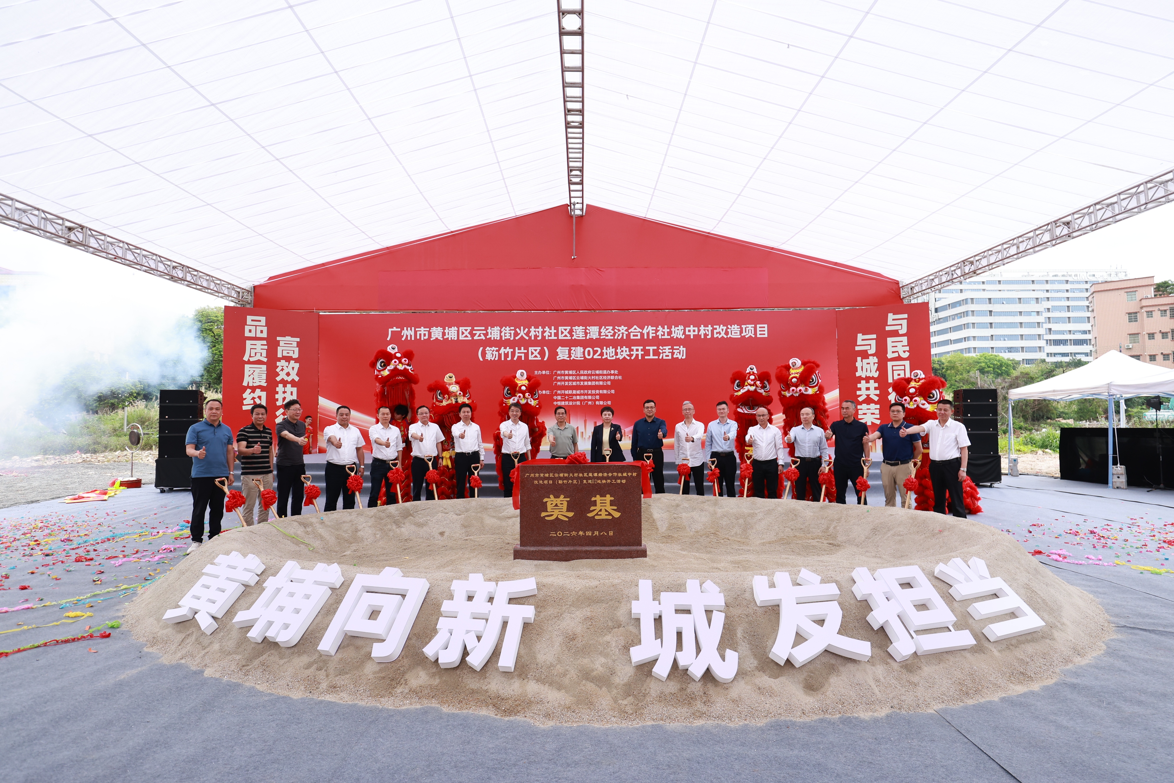 短短三个月,黄埔新增13个项目地块动工。图为黄埔火村(簕竹片区)02地块开工活动现场。李剑锋摄